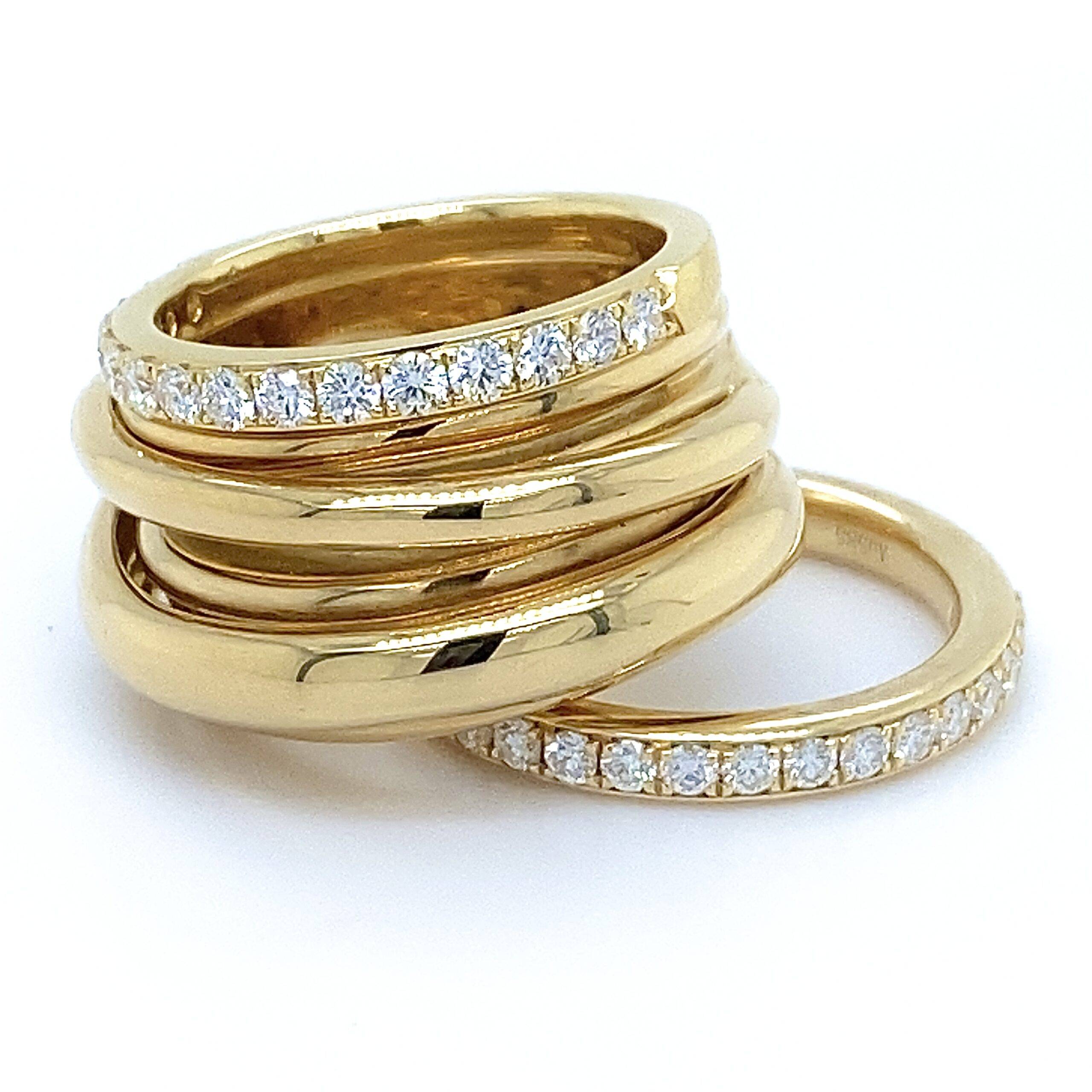 Dit is een18K massief gladde bogenring ring met 2 briljanten aanschuifringen.