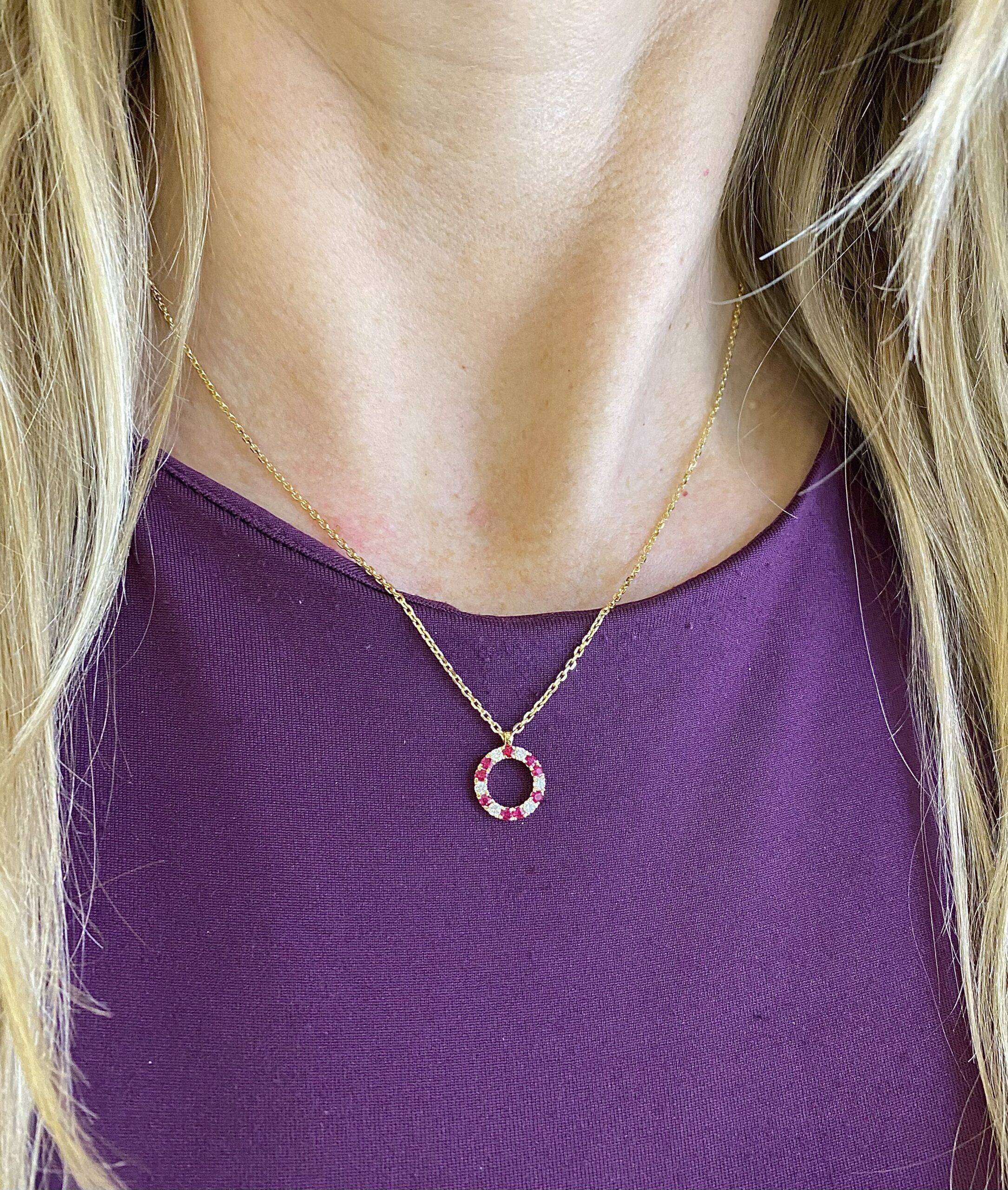Collier met Ronde hanger 18k geelgoud diamant 0.16crt Si Wesselton- Robijn