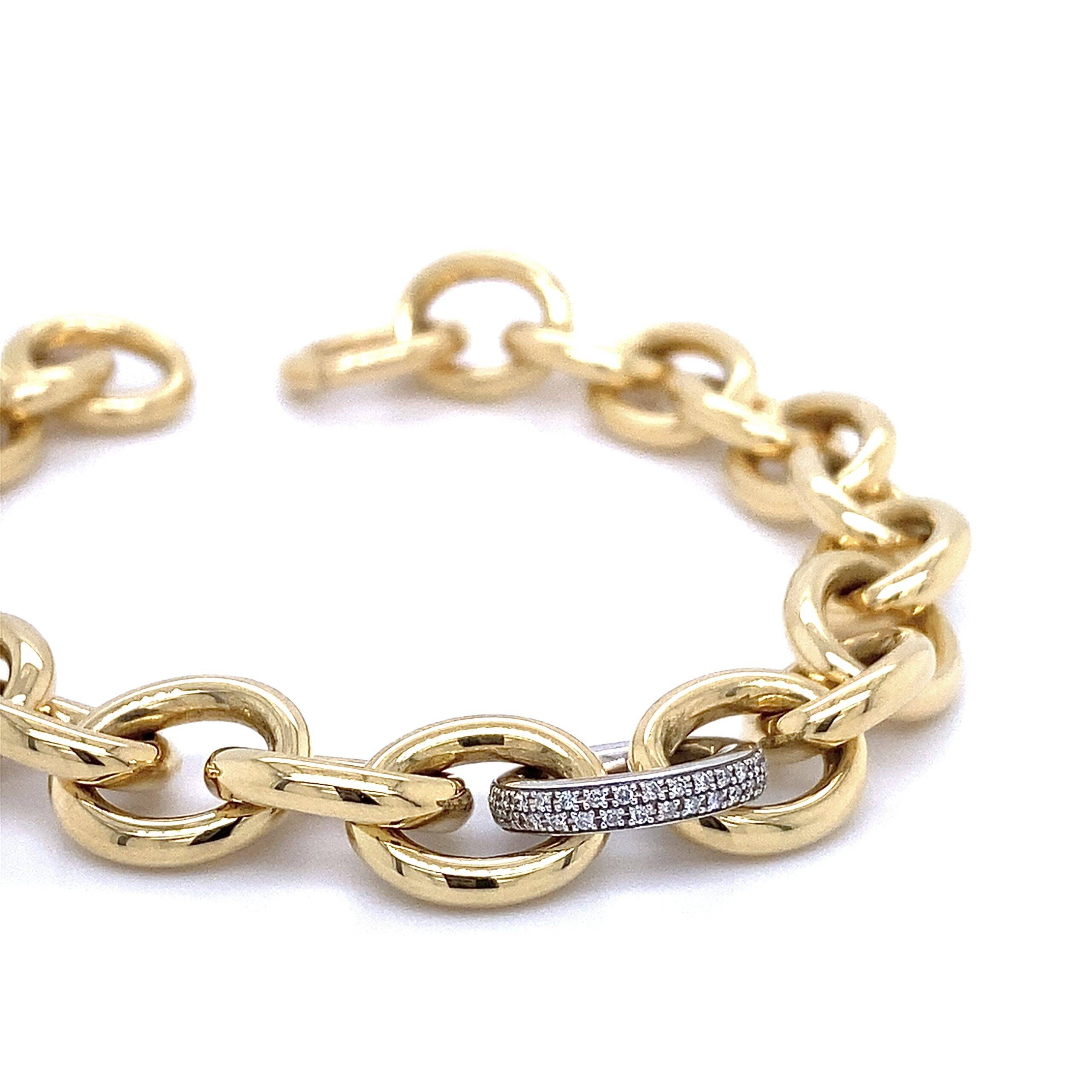 De jasseron schakelarmband is 14K geelgoud met een briljant schakel van 0.17crt SI Wesselton.