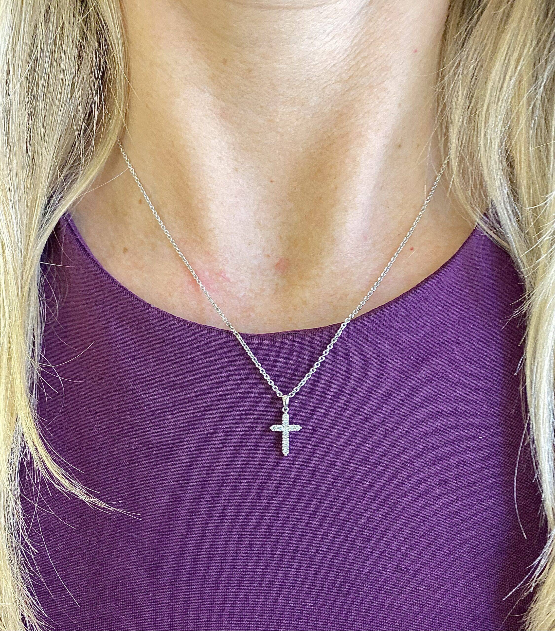 Hanger als kruisje prachtig gezet met briljant, waarvan in totaal 0,18crt SI Wesselton.