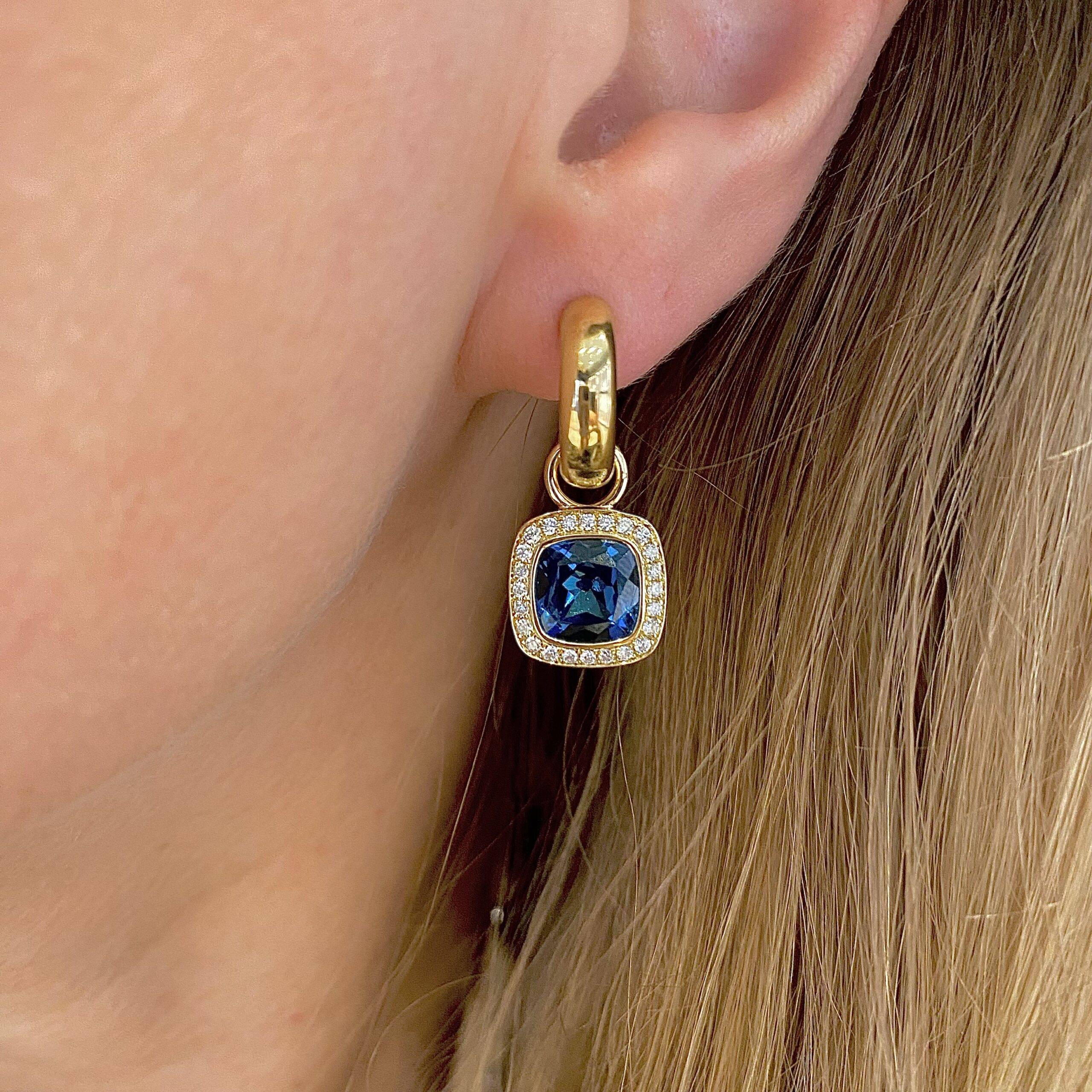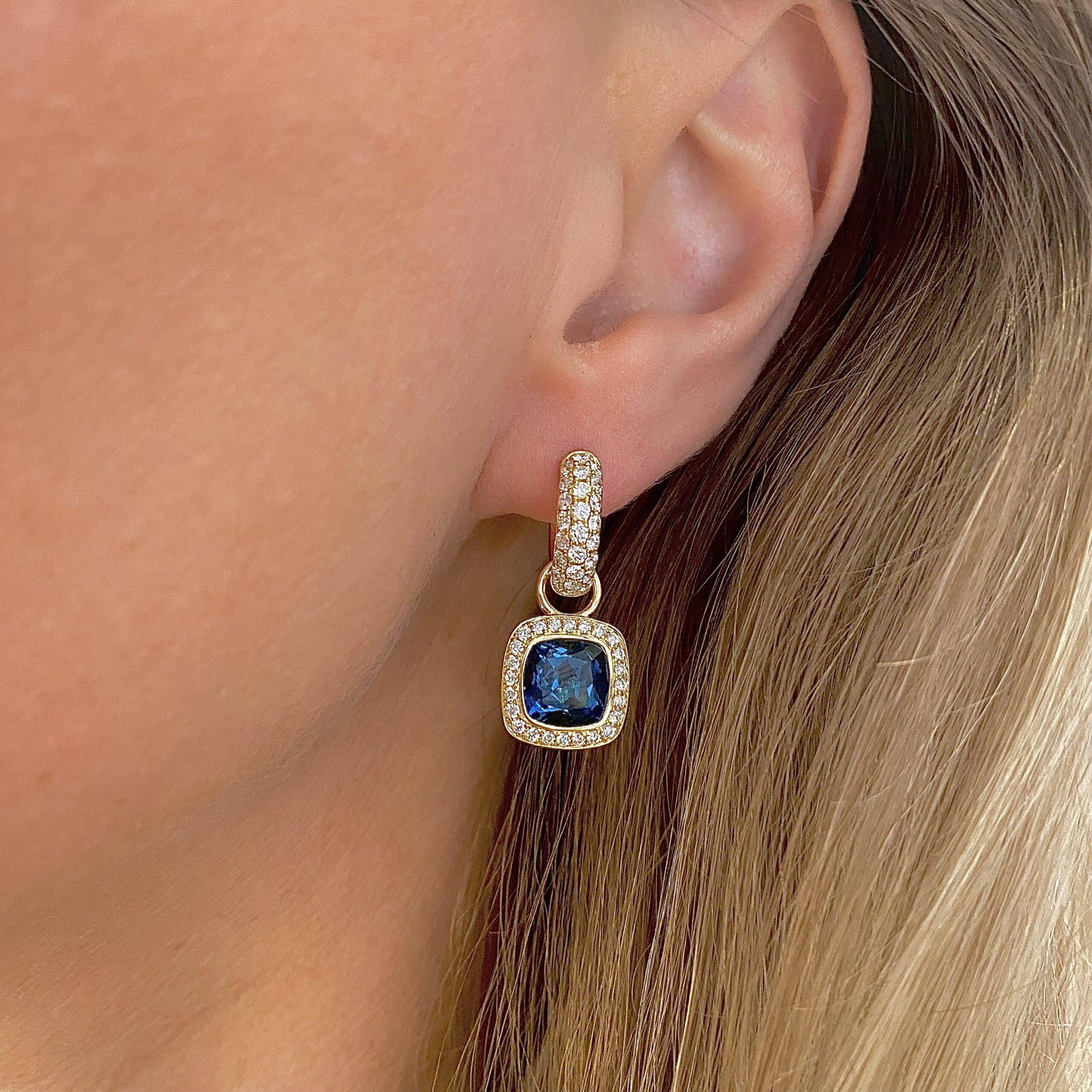 Prachtige creool oorhangers met facetgeslepen LondonBlue Topaas en briljant.
