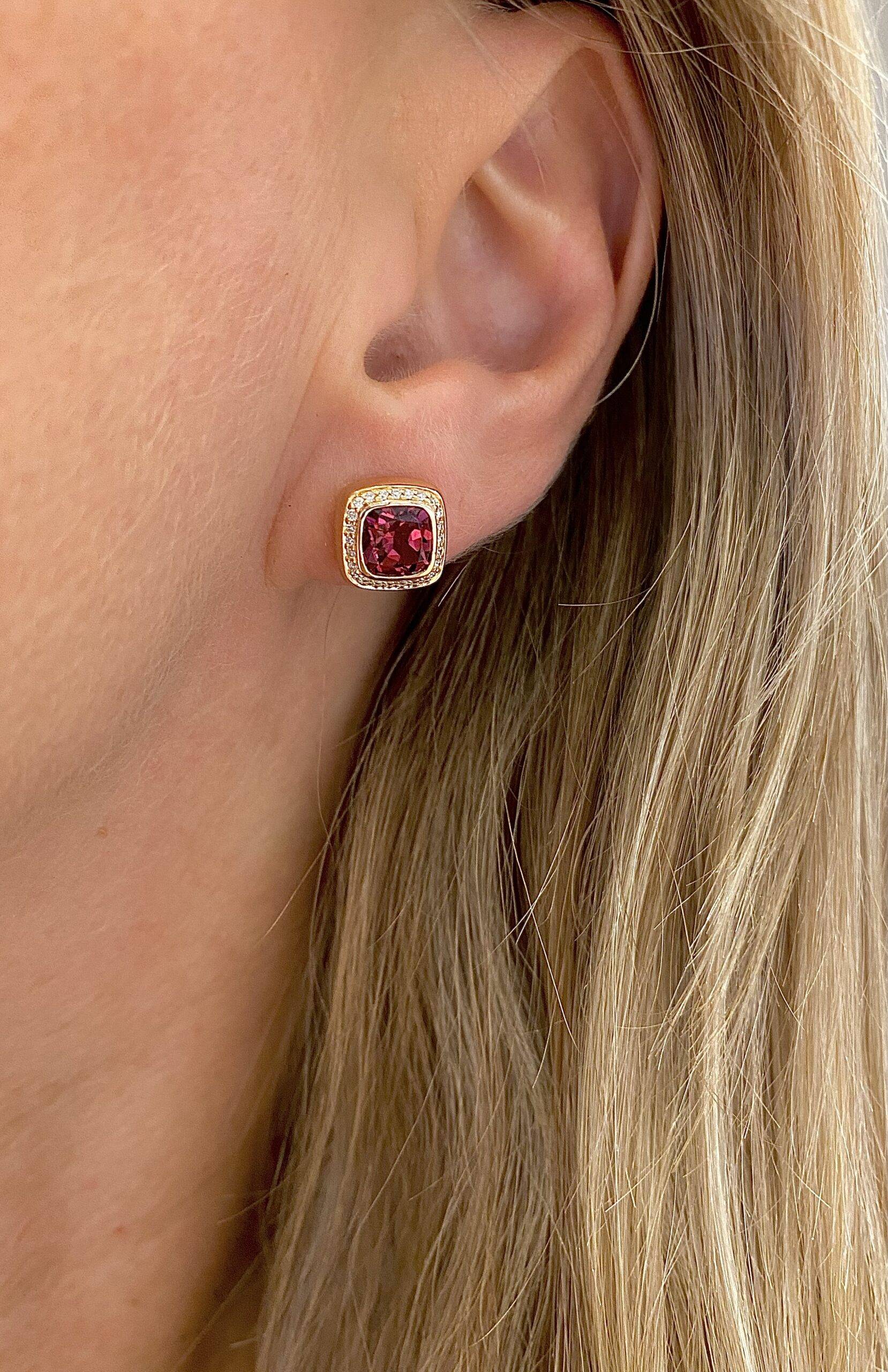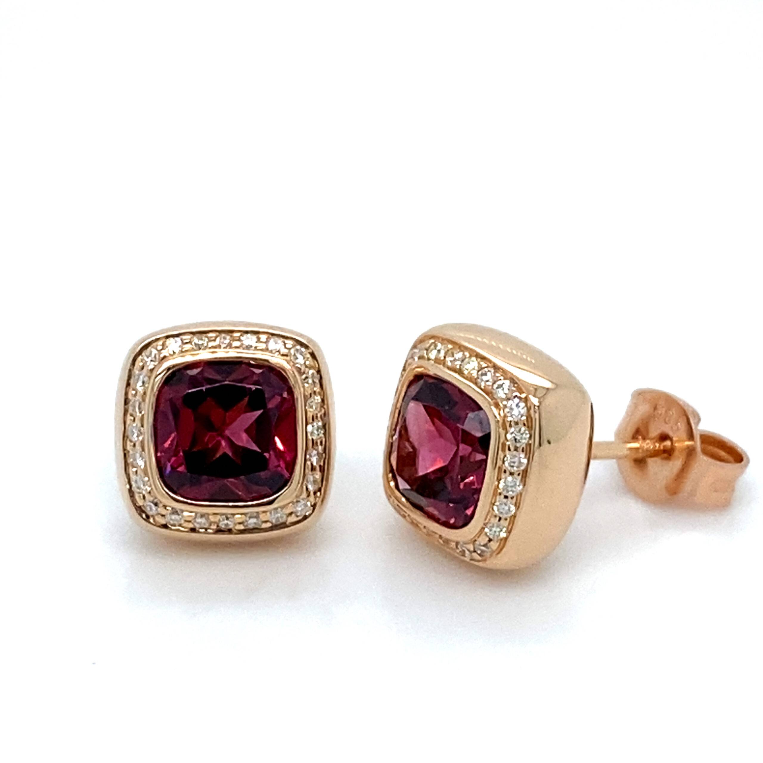Luxe oorknoppen 14K rosegoud, met Rhodoliet en briljant.