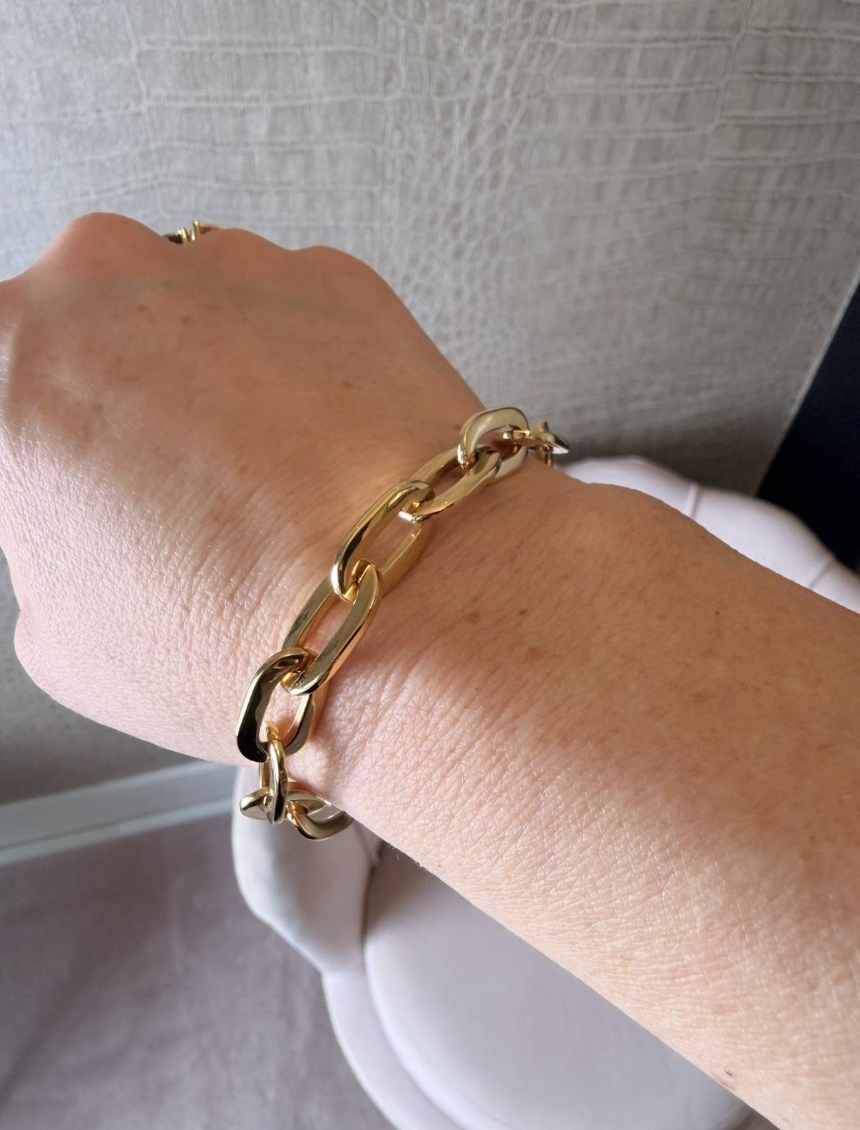 Wat een beauty! Deze 18k gouden armband. Tilt elke outfit naar een hoger niveau!