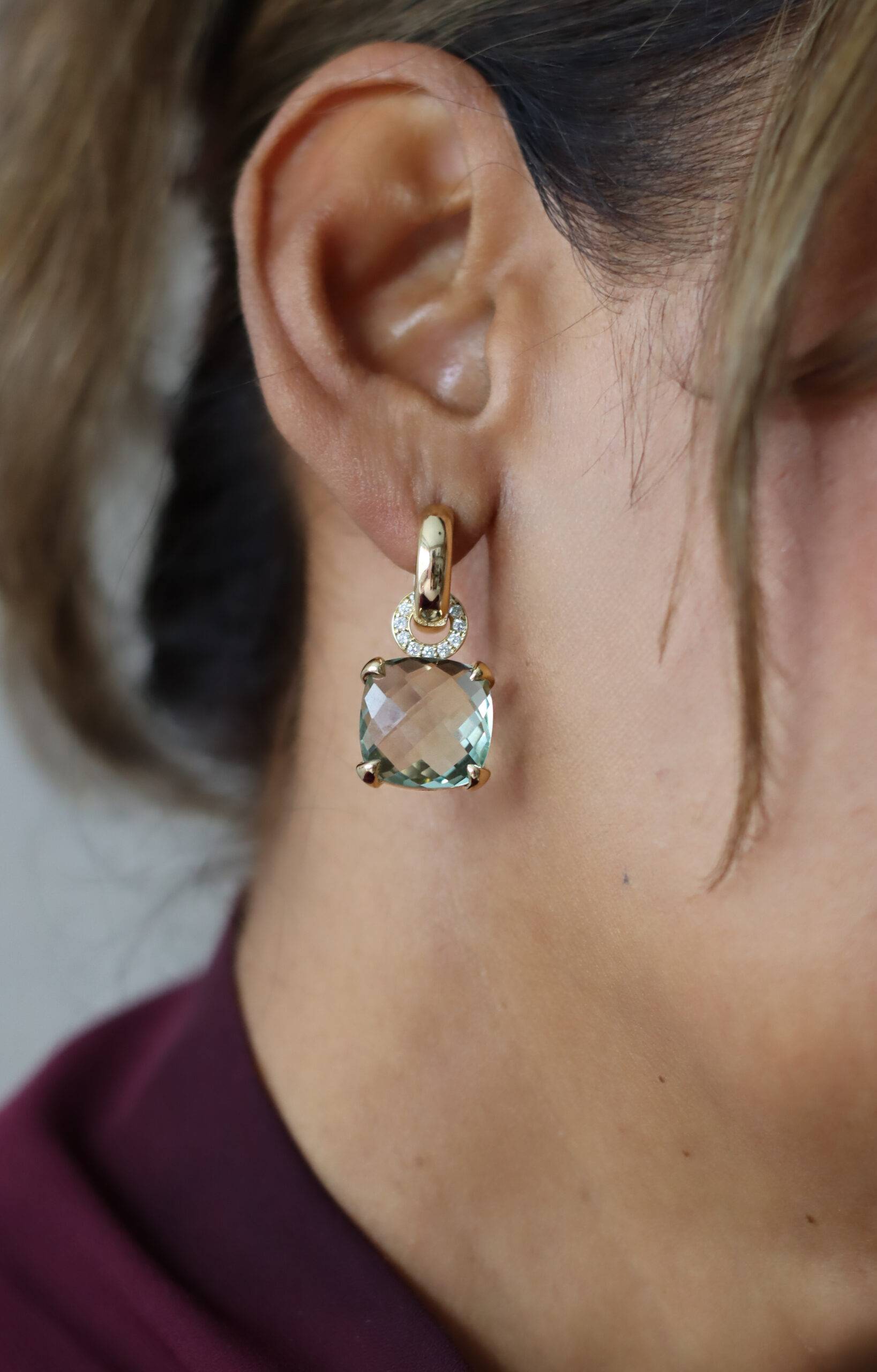 “Pigalle’s Collection” geelgouden 14k oorbellen met groene Amethist en Diamant 0.38crt VS Wesselton
