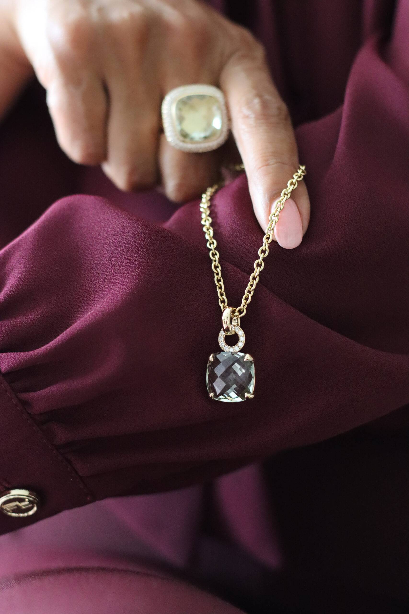 By Pigalle Pillow ring 14k goud met diamant 1.09crt VS W en groene amethist