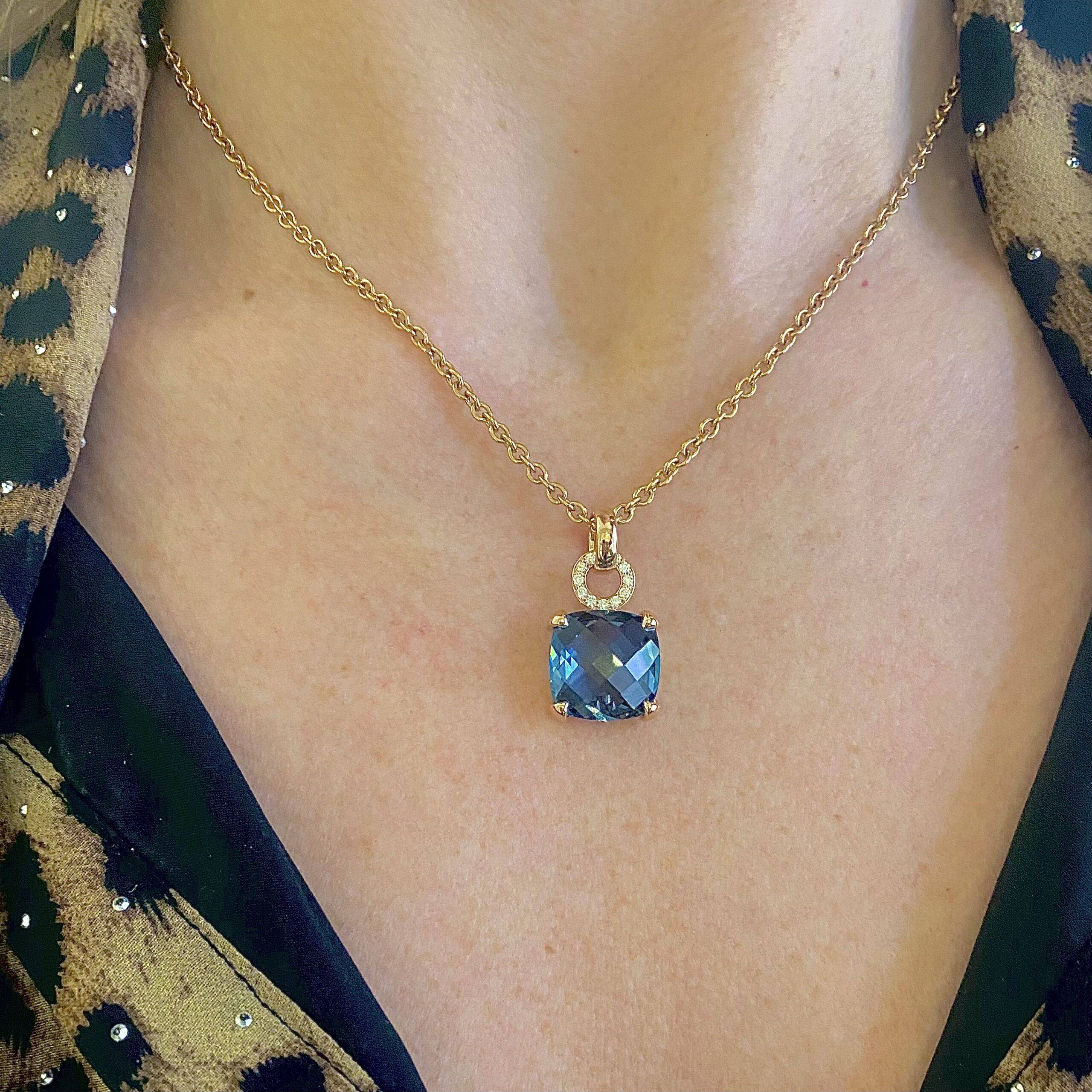 True girl candy! Deze fantastische 14k roségouden hanger met facet geslepen LondonBlue Topaas.
