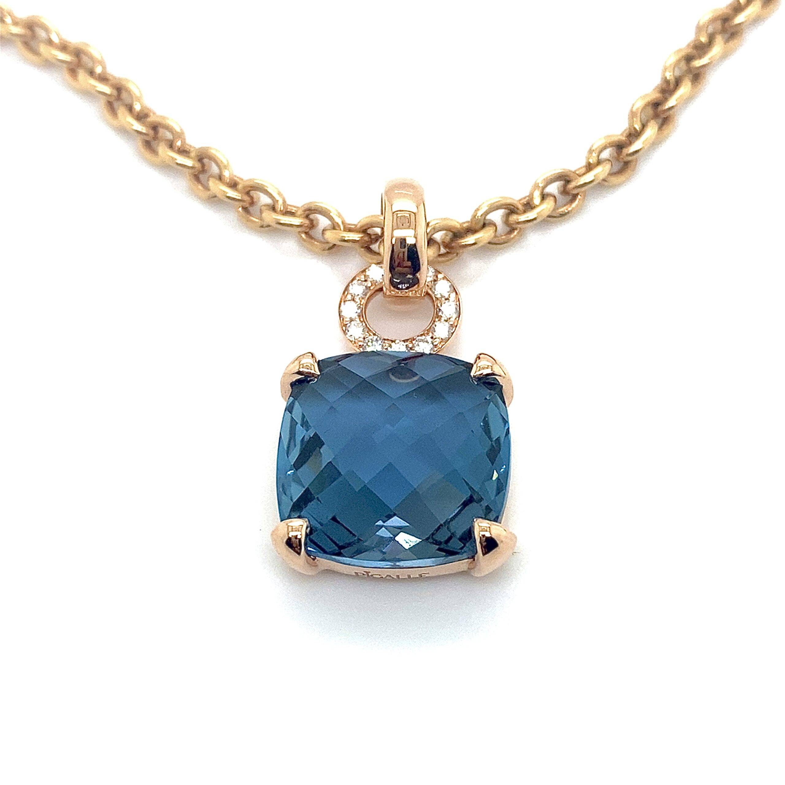 “Pigalle’s Collection” roségouden 14k hanger met LondonBlue Topaas en Diamant 0.19crt VS Wesselton