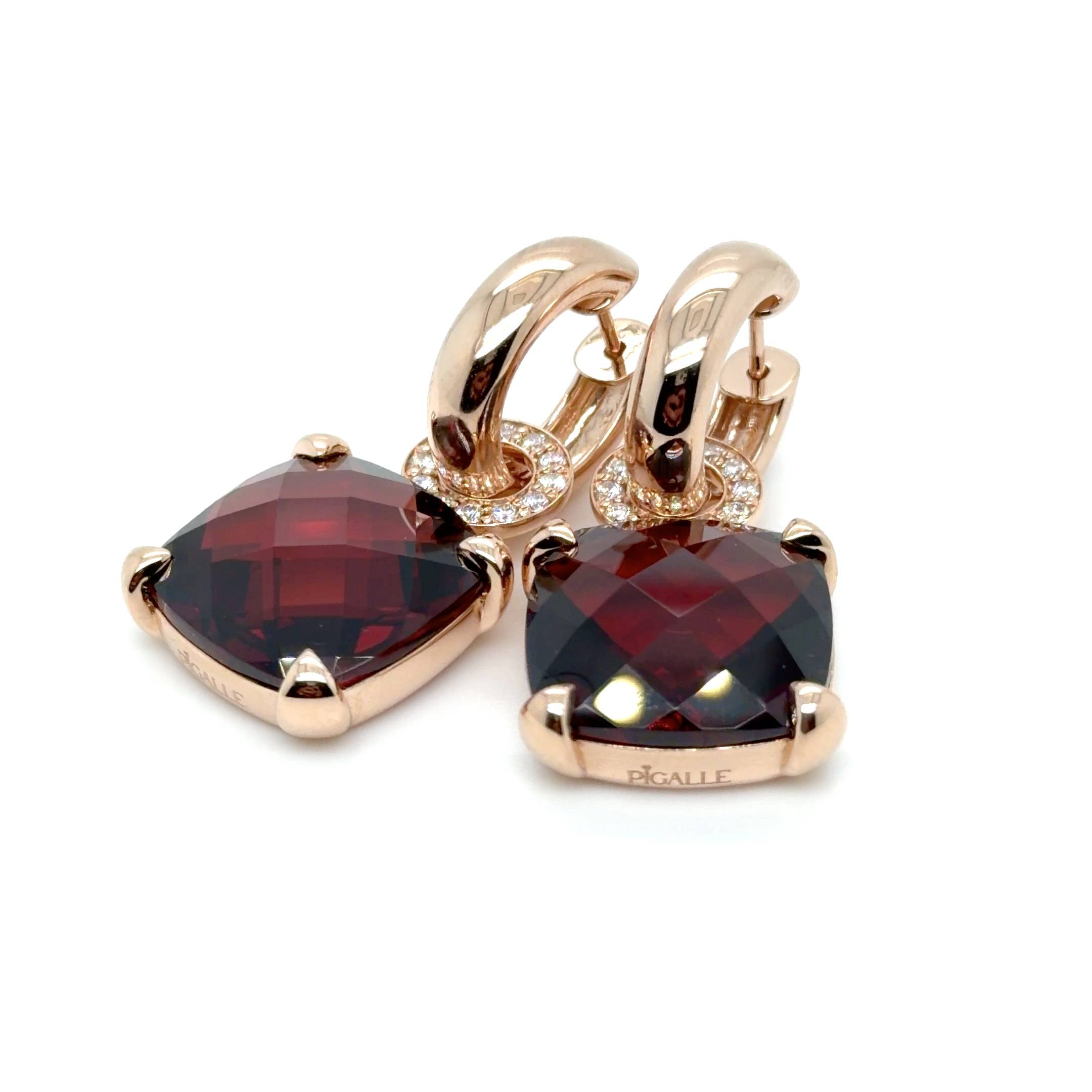 Red Garnet – roségouden oorringen met granaat en diamant 14k