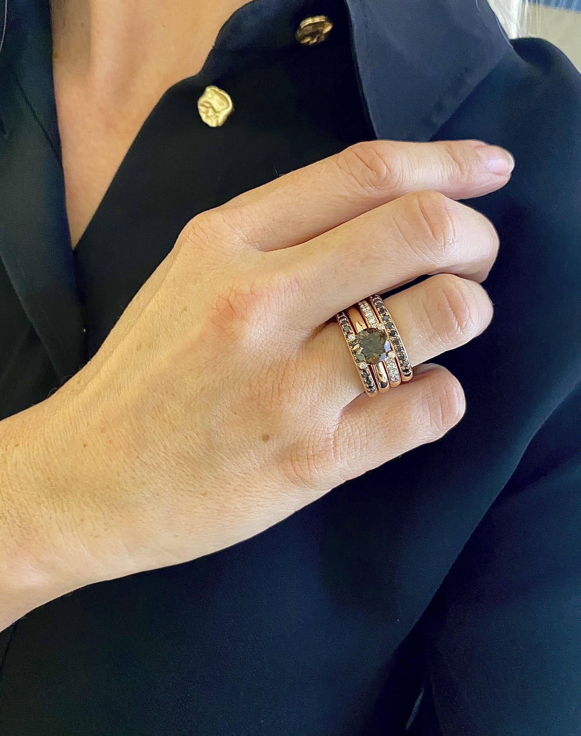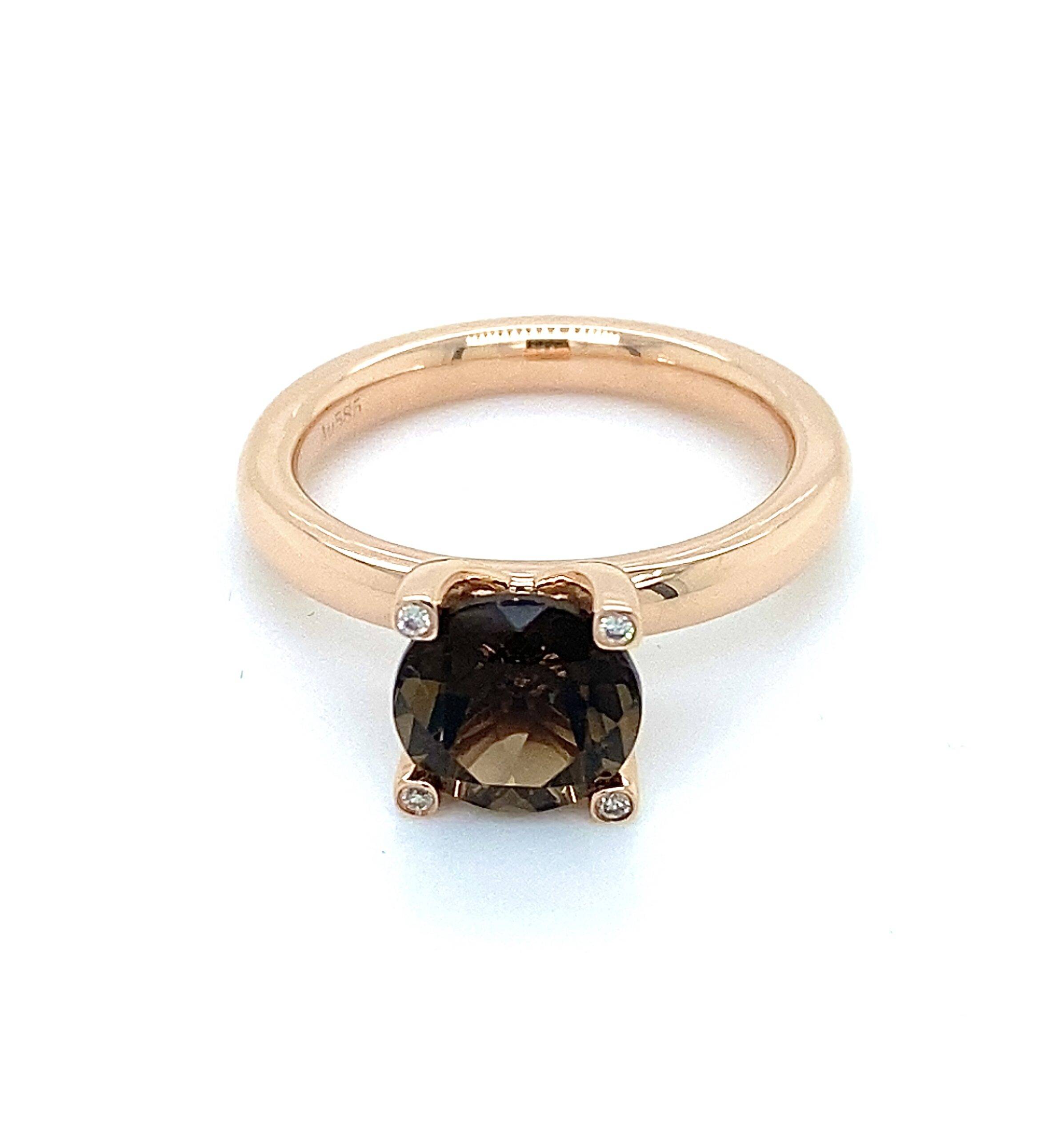 COMING SOON Ring Rookquartz 14k roségoud- briljant