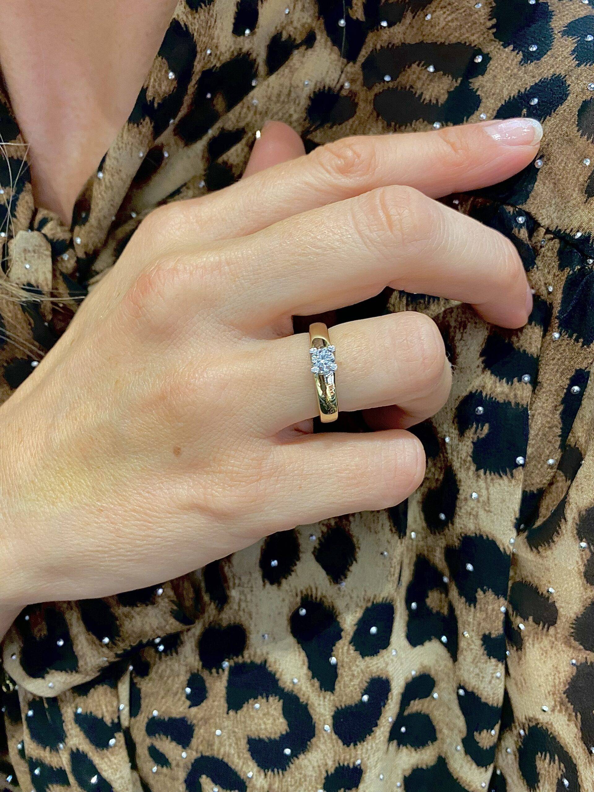 Solitair ring 14K geelgoud 4 poot rechte band 0.30crt VVS TW
