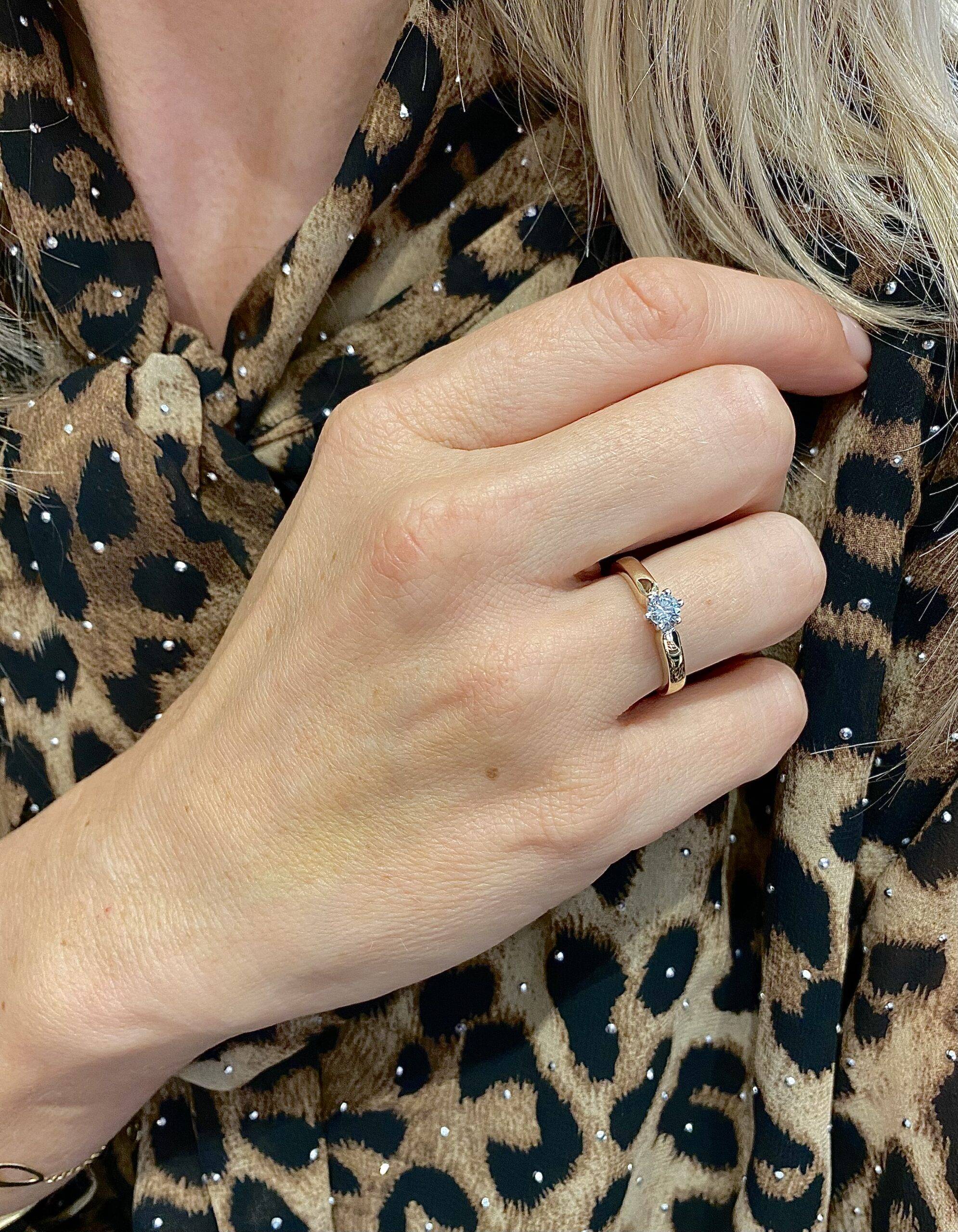 14K geelgouden solitair ring met 6 poot chaton en een rechte band. Briljant geslepen diamant van 0,30crt in top kwaliteit, VVS Top Wesselton.