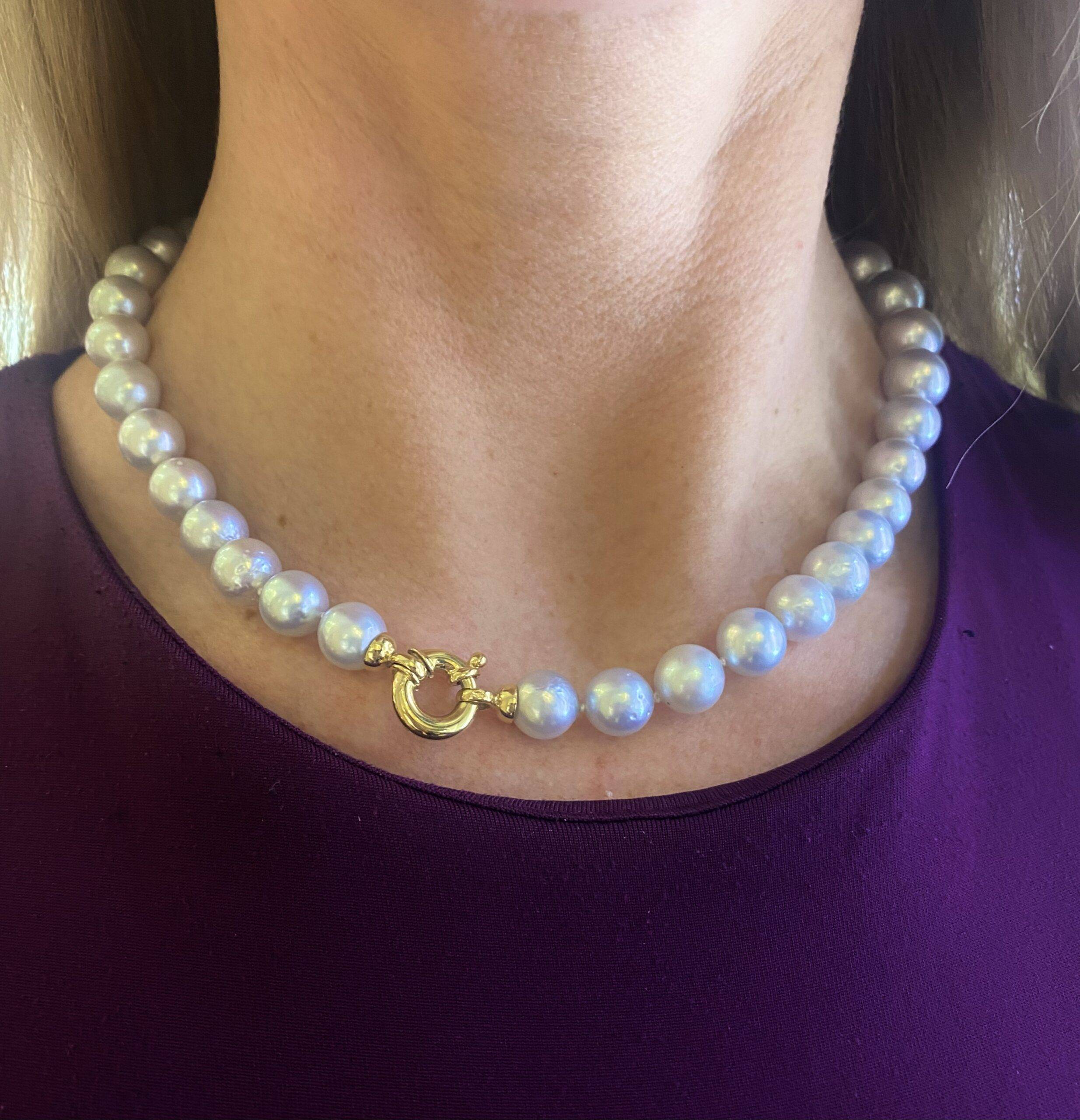 Zuidzee- Parel snoer met een prachtige grijze luster.